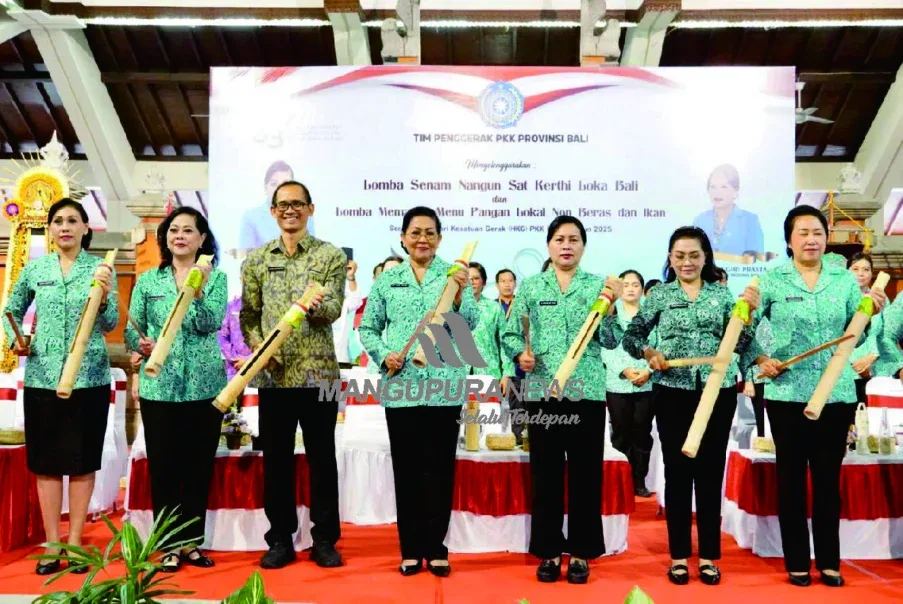 MANGUPURANEWS – DENPASAR, Tim Penggerak PKK Provinsi Bali menggelar Lomba Senam Nangun Sat Kerthi Loka Bali dan Lomba Memasak Menu Pangan Lokal Nonberas dan Ikan, dalam rangka memperingati Hari Kesatuan Gerak (HKG) PKK ke-53 Tahun 2025. Kegiatan ini berlangsung meriah di Gedung Nari Graha, Denpasar, pada Jumat (20/6).