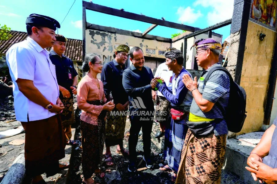 MANGUPURANEWS – BADUNG, Wakil Bupati Badung, Bagus Alit Sucipta menyerahkan bantuan sosial yang tidak dapat direncanakan kepada dua warga korban kebakaran di Br. Delod Peken dan warga Br. Peken Baleran, Kelurahan Kapal, Kecamatan Mengwi, Kamis (15/5). Bantuan sosial ini sebagai bentuk kepedulian dan komitmen pemerintah daerah dalam hal ini Bupati dan Wakil Bupati Badung hadir meringankan beban masyarakat yang terdampak. Hadir mendampingi Wakil Bupati, Anggota DPRD Badung I Made Suwardana, Inspektur Luh Suryaniti, Kalaksa BPBD I Wayan Darma, Kabag Prokompim Setda Badung Made Suardita, Tripika Kecamatan Mengwi serta Lurah Kapal I Nyoman Adi Setiawan.