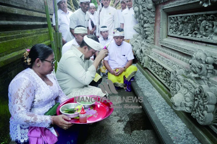 MANGUPURANEWS – BADUNG, Wakil Bupati Badung Bagus Alit Sucipta menghadiri Karya Melaspas Agung Rsi Gana, Panca Kelud dan Pujawali Nyatur di Pura Dalem Bebalang, Banjar Bedauh, Desa Adat Carangsari, Desa Carangsari, Kecamatan Petang, Badung, Senin (12/5). Wabup juga melakukan mendem pedagingan di salah satu Pelinggih yang ada di Pura Dalem Bebalang. Turut didampingi anggota DPRD Badung Bima Nata dan I Nyoman Artawa, Penglingsir Puri Carangsari dan Angga Puri, Plt. Camat Petang AA. Ngr Dharma Putra, Perbekel Desa Carangsari I Made Sudana, Bendesa Adat carangsari, serta tokoh dan masyarakat setempat.