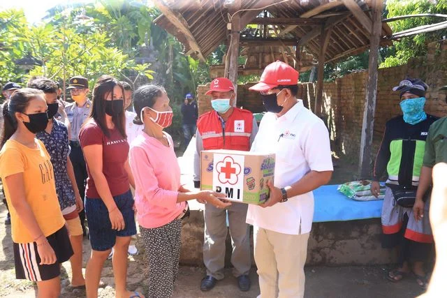 Bantuan berasal dari PMI Kabupaten Klungkung yang diserahkan kepada KK Miskin Ni Ketut Sriasih (57) yang bekerja sebagai petugas kebersihan di salah satu objek wisata yang berada di Desa Bakas, untuk menghidupi tiga orang anaknya, yakni Made Sujani (25), Komang Saputra (18), Ketut Siti (16). Bantuan yang diberikan berupa bantuan sembako dan masker.