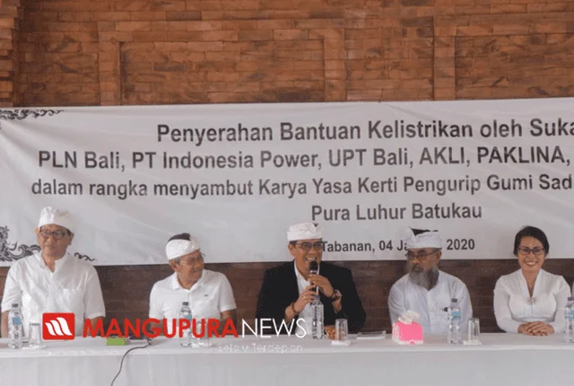 TABANAN, MANGUPURANEWS – Dalam rangka mensukseskan pagelaran Karya Agung Pengurip Gumi yang akan diselenggarakan pada 20 Februari mendatang, Wabup Sanjaya bersama PLN Bali ‘Ngayah’ dirangkaikan dengan penyerahan bantuan kelistrikan, Sabtu (4/1) bertempat di Pura Luhur Batukau.