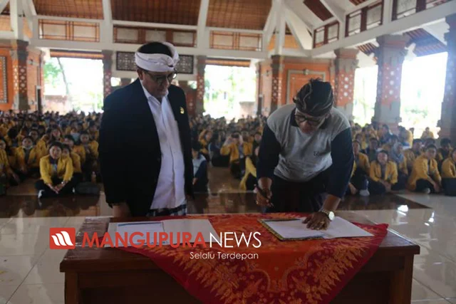 TABANAN, MANGUPURANEWS – Wakil Bupati Tabanan I Komang Gede Sanjaya, melepas ratusan mahasiswa Undiknas Denpasar yang akan melakukan Kuliah Kerja Nyata (KKN) yang tersebar tersebar di 3 Kabupaten, yaitu Kabupaten Tabanan, Klungkung, dan Karangasem. Pelepasan tersebut dilakukan di Gedung Kesenian I Ketut Maria Tabanan, Kamis (19/12) pagi.