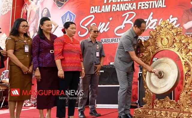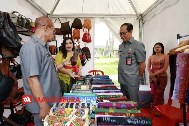 PUSPEM BADUNG, MANGUPURANEWS – Wakil Bupati Badung I Ketut Suiasa membuka secara resmi Pameran UMKM yang diselenggarakan oleh Dinas Koperasi UKM dan Perdagangan Kab. Badung serangkaian Festival Seni Budaya Kabupaten Badung dalam menyambut peringatan HUT ke-10 Kota Mangupura. Pembukaan ditandai dengan pemukulan Gong oleh Wabup Suiasa di areal timur Gedung Balai Budaya Giri Nata Mandala Puspem Badung, Senin (11/11).