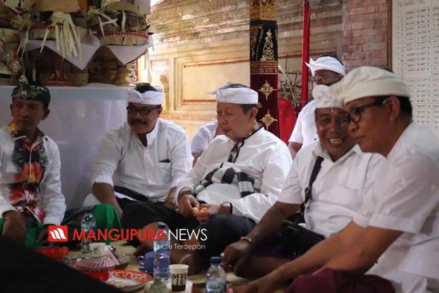 ABIANSEMAL, MANGUPURANEWS – Wakil Bupati Badung I Ketut Suiasa menghadiri Upacara Karya Wraspati Kalpa, Melaspas, Mupuk Pedagingan lan Padudusan di Pura Dalem Dasar Br. Busana Desa Adat Sibanggede Kecamatan Abiansemal Minggu (22/12). Upacara ini dipuput tiga Sulinggih yaitu Ida Pandita Mpu Griya Chandra Bhuwana Jagapati, Ida Pandita Mpu Griya Ubud dan Ida Pandita Mpu Griya Agung Sempidi. Turut hadir dalam kesempatan tersebut Penglingsir Puri Satria A.A. Ngurah Oka Ratmadi, DPRD Badung Dapil Abiansemal Ibu Luh Putu Sekarini, Putu Alit Yandinata dan I Nyoman Wiradana, Sekcam Abiansemal, Kapolsek Abiansemal, perwakilan Danramil Abiansemal, Perbekel Desa Sibanggede I Wayan Darmika serta Prajuru Adat dan Dinas Br. Busana Desa Adat Sibanggede.