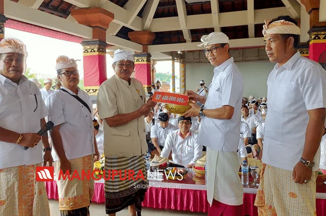 ABIANSEMAL, MANGUPURANEWS – Wakil Bupati Badung I Ketut Suiasa mengharapkan krama banjar agar memanfaatkan balai banjar dengan baik melalui pelaksanaan “Tri Tata Sukerta”. Pertama, tata sukerta parhyangan dengan selalu eling dan srada bhakti kehadapan Ida Bhatara yang berstana di Pura Melanting yakni Ida Bhatara Bhagawan Penyarikan. Kedua, tata sukerta pawongan, dengan meningkatkan ikatan krama banjar agar selalu bersatu. Dan ketiga, tata sukerta palemahan, dengan menjaga dan memelihara bangunan balai banjar dan pura melanting yang ada. “Semoga berdasarkan paiketan krama akan mampu meningkatkan pelaksanaan Tri Tata Sukerta menuju krama banjar yang sejahtera,” jelas Wabup Suiasa, Selasa (21/1) kemarin, saat menghadiri Upacara Tawur dan Melaspas seiring rampungnya pembangunan balai banjar serta Pura Melanting di Banjar Busana, Desa Sibanggede, Kecamatan Abiansemal. Upacara Tawur dilaksanakan serangkaian Karya Waraspati Kalpa, Melaspas, Padudusan Alit, yang puncaknya pada Saniscara Kliwon Wariga Sabtu 25 Januari mendatang.