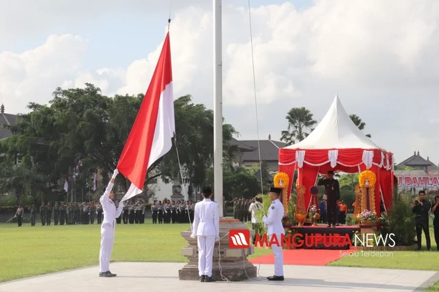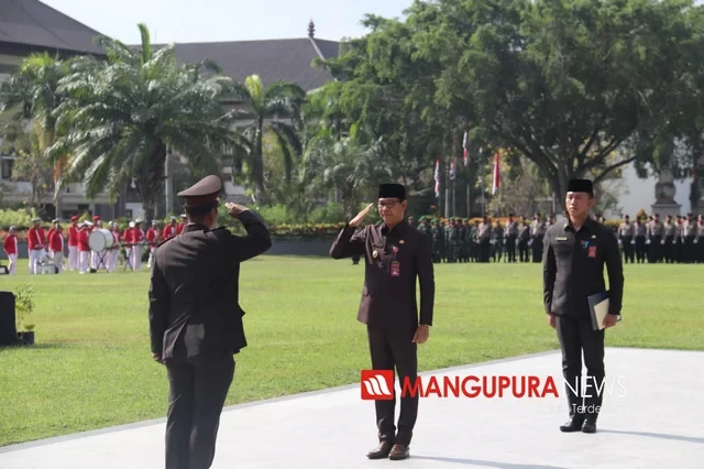 PUSPEM BADUNG, MANGUPURANEWS – Wakil Bupati Badung I Ketut Suiasa bertindak selaku Inspektur Upacara pada peringatan hari Pahlawan di Lapangan Mangupraja Mandala, Minggu (10/11). Turut hadir Wakil Ketua DPRD Kabupaten Badung Made Sunarta beserta anggota, Sekda Adi Arnawa, dari unsur Polresta Denpasar, unsur Polres Badung, unsur Dandim 1611/Badung, Pengadilan Negeri Denpasar, Kejaksaan Negeri Badung, Pimpinan Perangkat Daerah dan LVRI Badung.