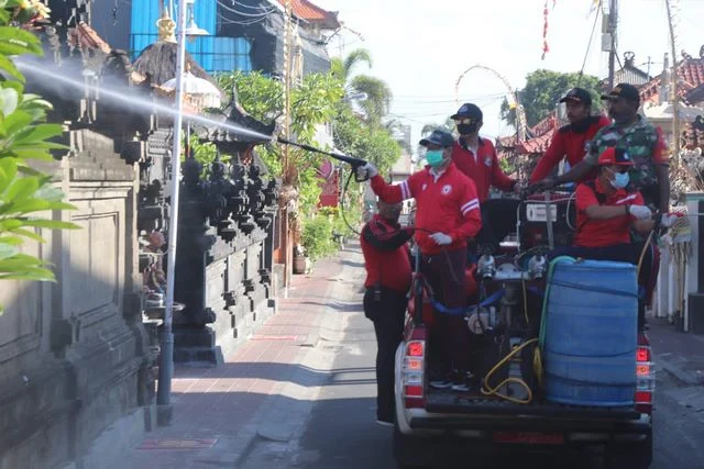 KUTA SELATAN, MANGUPURANEWS – Pemkab. Badung melalui Satgas Penanggulangan Virus Corona Disease (Covid-19) terus bergerak melakukan penyemprotan disinfektan guna memutus rantai penyebaran wabah virus corona. Seperti pada Sabtu (4/4), Satgas Covid-19 Badung menyasar wilayah Kelurahan Benoa dan Tanjung Benoa, Kecamatan Kuta Selatan.
