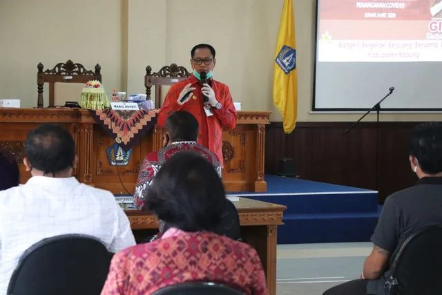Pada kesempatan Wabup Suiasa menyampaikan kebijakan-kebijakan Pemerintah Kabupaten Badung terkait pandemi Covid-19 saat ini diantaranya penggratisan biaya PDAM, pemberian sembako untuk masyarakat paling terdampak (keluarga kurang mampu/KPM), insentif untuk masyarakat Badung yang di PHK/dirumahkan, selanjutnya menyiapkan rumah singgah untuk PMI/ABK dan tenaga kesehatan, pembiayaan BPJS, pengadaan masker untuk masyarakat Badung serta pengadaan APD dan insentif kepada tenaga medis.