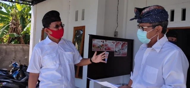 Dalam kesempatan tersebut, Wabup Sutjidra juga membagikan masker dan Vitamin kepada satgas Covid-19 yang diterima langsung oleh Kepala Desa setempat.