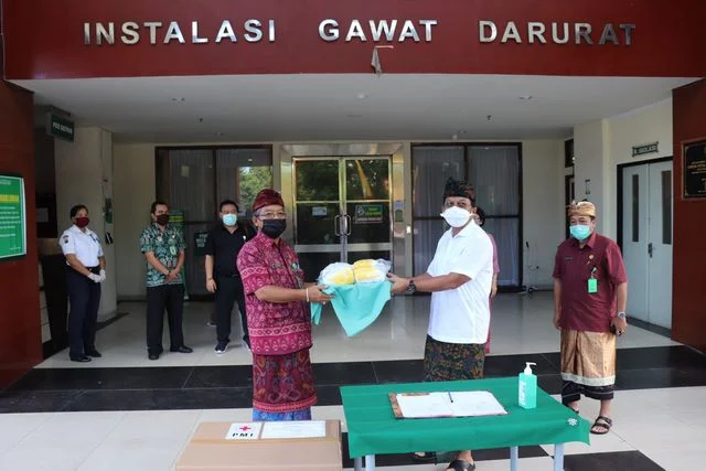 Selain bantuan dari PMI Provinsi Bali, Wabup Sutjidra juga menyerahkan Bantuan Masker N95 dari Pemerintah Desa Tembok, masker ini merupakan masker bantuan saat tanggap darurat Gunung Agung di Tahun 2017. (MN/ama-Hbl)