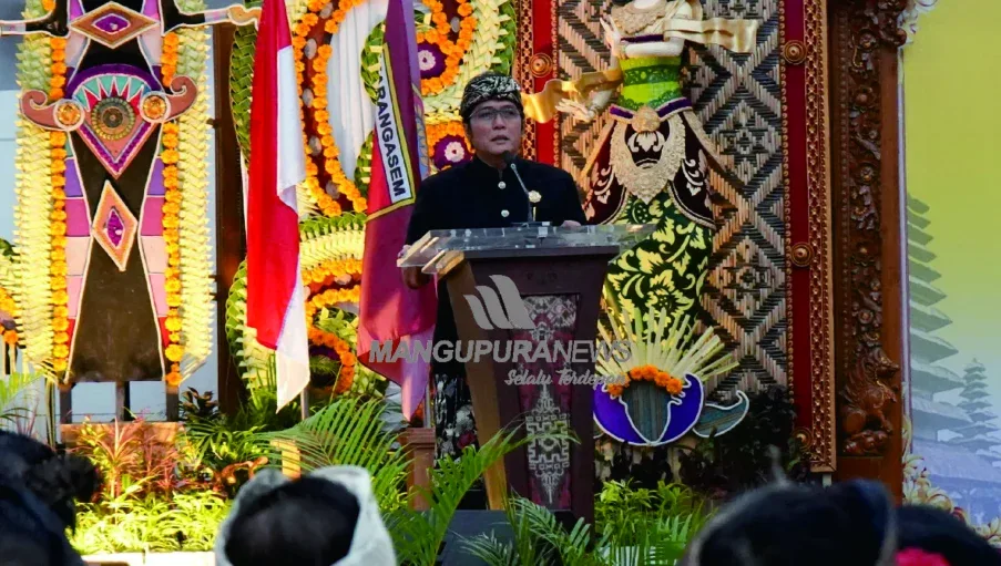 MANGUPURANEWS – KARANGASEM, Wakil Gubernur Bali, I Nyoman Giri Prasta, menghadiri Lokasabha Madya VII Maha Gotra Pasek Sanak Sapta Rsi (MGPSSR) Kabupaten Karangasem yang diselenggarakan di UKM Center Amlapura, Karangasem, pada Sabtu (12/7). Kegiatan ini mengusung tema: “Melalui Implementasi Swadarmaning Kepasek, Kita Wujudkan SDM Pasek yang Unggul Menuju Karangasem yang Agung.”