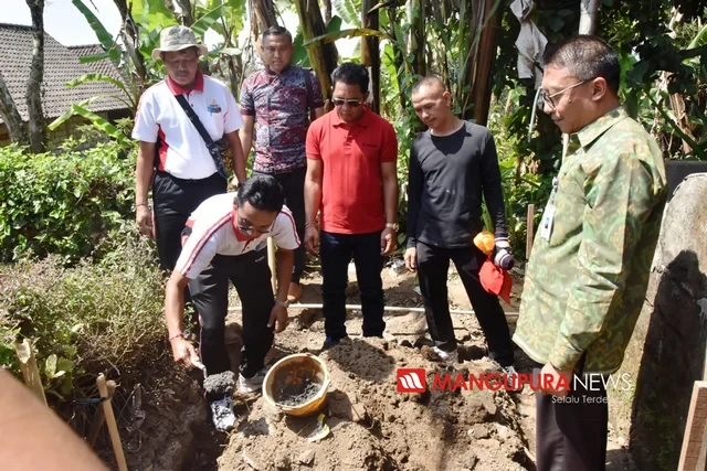 PETANG, MANGUPURANEWS – Pemerintah Kabupaten Badung menggelontor bantuan jamban sehat keluarga melalui program bedah jamban di Desa Belok/Sidan, Kecamatan Petang, Jumat (25/10). Sedikitnya 81 KK belum memiliki jamban sehat keluarga dimana tahun 2019 ini dilakukan bedah jamban untuk 65 KK, sisanya dituntaskan tahun 2020. Secara simbolis bantuan bedah jamban ini dilakukan di rumah keluarga kurang mampu, I Made Merta di Banjar Penikit, Desa Belok/Sidan, Petang ditandai peletakan batu pertama oleh Camat Petang I Gde Eka Sudarwitha.