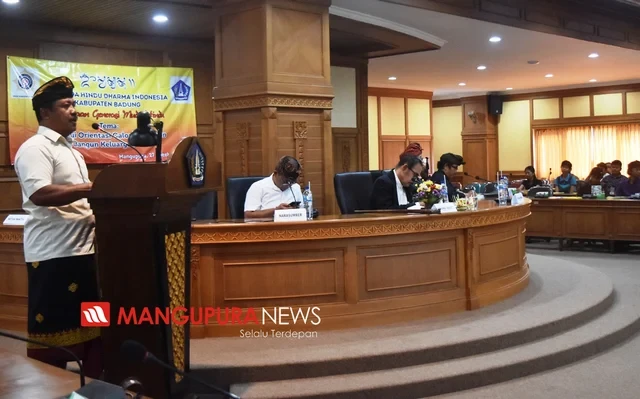 PUSPEM BADUNG, MANGUPURANEWS – Bertempat di Ruang Gosana III DPRD Kabupaten Badung, Parisadha Hindu Dharma Indonesia (PHDI) Kabupaten Badung menggelar kegiatan Pembinaan Generasi Muda Hindu, Minggu (27/10). Peserta berjumlah 250 orang yang merupakan perwakilan dari yowana masing masing desa adat sebanyak 2 orang.